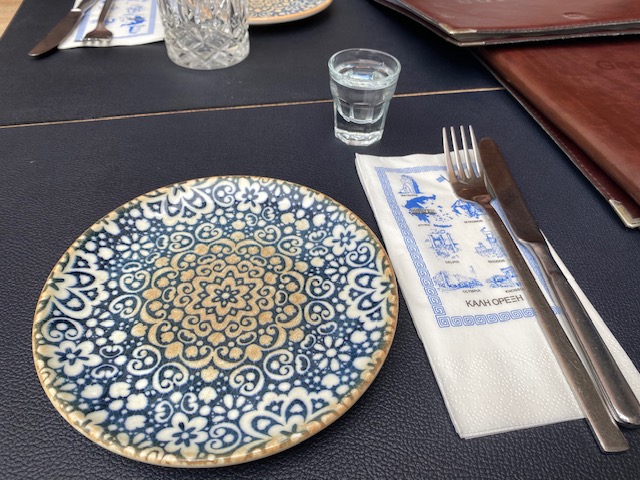 Als wir fertig und mehr als zufrieden satt waren, wurden wir gefragt, ob wir Kaffee möchten. Ich sagte, ein Espresso wäre schön, aber sie haben keinen Espresso. Sie haben nur echten griechischen Mokka, den ich natürlich probieren musste. Kostbar!