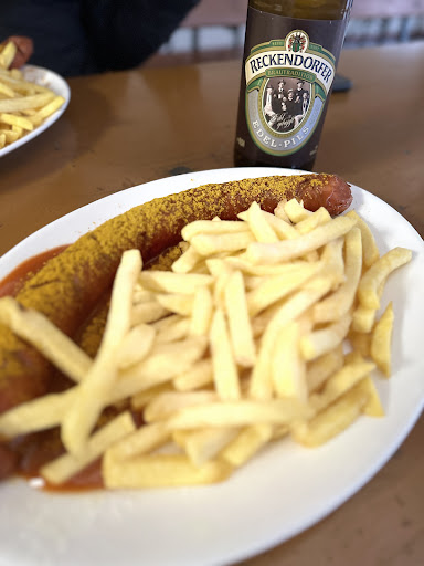 Read moreCurrywurst des Grauens 🙄 Aufgrund der doch überwiegend positiven Bewertungen dachten wir es wäre einen Besuch wert! Ist es aber nicht! Die Currywurst ist noch furchtbarer als die am Bahnhof in Bad Staffelstein! Aufgewärmt (zumindest teilweise) wahrscheinlich im Wasserbad, die Soße 1:1 geschmacklos und säuerlich aus der Flasche und die Pommes in RAL-Weiß! Sucht Euch besser woanders was für die...