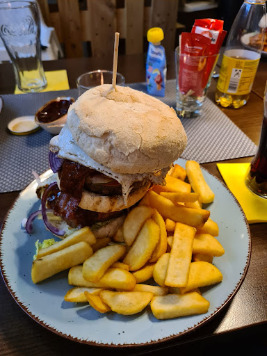 Read moreHm, erst loben, dann toben, heißt es ja. Das Essen war lecker, qualitativ top, das Preis-Leistungsverhältnis des Essens ist auch gut, der Service ist auch nett und freundlich. Das Ambiente gefällt mir, die Sanitäranlagen waren trotz zahlreicher Gäste auch sauber (dafür würde ich sogar 6 Sterne geben). Was ich persönlich verbesserungswürdig finde, ist die Parkplatzsituation, es gibt leider nicht genug Parkplätze, teilweise müssen die Gäste auf der gegenüberliegenden Straßenseite parken (Bundesstraße!). Was uns doch recht sauer aufgestoßen ist, ist die extrem lange Wartezeit. Wir hatten zwar gesehen, dass es gut voll war, es wurde uns gesagt, dass es eine gute Stunde dauern würde, maximal 1,25 Stunden, bis unser Essen fertig sein würde (1 Burger und 1 Salatteller zur Selbst-Abholung). Gegen Ende dieser Zeit habe ich dann nachgefragt und wurde auf weitere 10 Minuten vertröstet, dann um weitere 10 Minuten. Gedauert haben die beiden Essen (wie gesagt: 1 Burger und 1 Salatteller) insgesamt 1 Stunde 40 Minuten. Diese Wartezeit finde ich selbst bei vollem Haus nicht akzeptabel! Da solltet Ihr nicht nur dran arbeiten, da müsst Ihr ganz einfach dran arbeiten! Das hat auch zu der niedrigen Anzahl von...