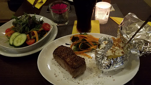 Ok so I loved the fact that this restaurant it's a mixture of loving Germans, American food and Latin music I love that mixture. 1st service excellent across the board, I went for travel and training, I do not speak a lot of German language but the waiter tried her best to explain and I tried my best to help as well. Lovely, lovely service very polite and friendly. 2nd place was impeccable CLEAN AND WELL MAINTAINED, love the fact that everything was clean from the chairs to the ceiling it is a great feeling knowing you are being served In a clean environment. 3rd FOOD WAS AMAZING 🌟🌟🌟🌟🌟 I had steak and I tell ya well worth the euros for that steak well cooked, flavorful! And the presentation of the plate was great for the time and detail. I cannot explain how good was the food u need to try this restaurant if u close by!. 4th dessert was picked by the waiter and I absolutely loved it, simply and tasty. Make sure you take care of the water I know they work on salary but is not a bad gesture to tip them out for their excellent service. I would recommend this place to any of my friends and I am sure they would enjoy this great place as...