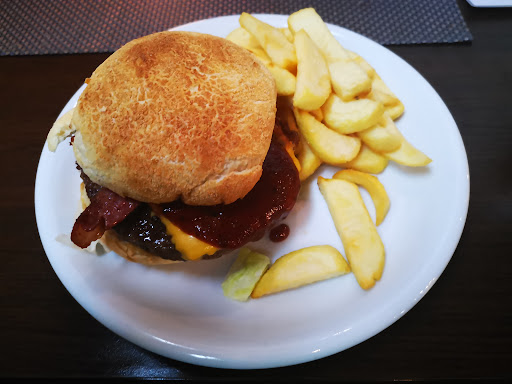 Read moreVon außen etwas unscheinbar aber es gibt ansprechende Sitzgelegenheiten vor dem Haus, leider ist gleich in unmittelbarer Nähe eine Hauptverkehrsstrasse, die B65. Beim Eintreten wandelt sich das Blatt, jetzt kommt ein USA Feeling auf. Die Dekoration und das Outfit laden zum Verweilen ein. Eine sehr freundliche Bedienung, mit einem gesunden Schuss Humor empfing uns, so muss es sein!!! Alles ist sehr sauber und ordentlich. Bei unserer Bestellung gab die Bedienung uns den Hinweis das man ein wenig Zeit mit einplanen solle, der Grund es werde alles frisch zubereitet,stimmt. Die Spezialität, spare ribbs. Ich aß einen Burger. Alles vom Feinsten. Das Fleisch der ribbs war sehr zart und sehr gut gewürzt und hat dementsprechend sehr gut gemundet. Das Fleisch des Burger's sehr saftig und auch hier sehr gutschmeckend. Die Beilagen waren sehr gut und reichlich. Ich habe in den Staaten und in 🇸🇪, die den Lebensstil ein wenig amerikanisieren, solches Essen auch genossen. Das Essen in Deutschland steht dem in nichts nach.