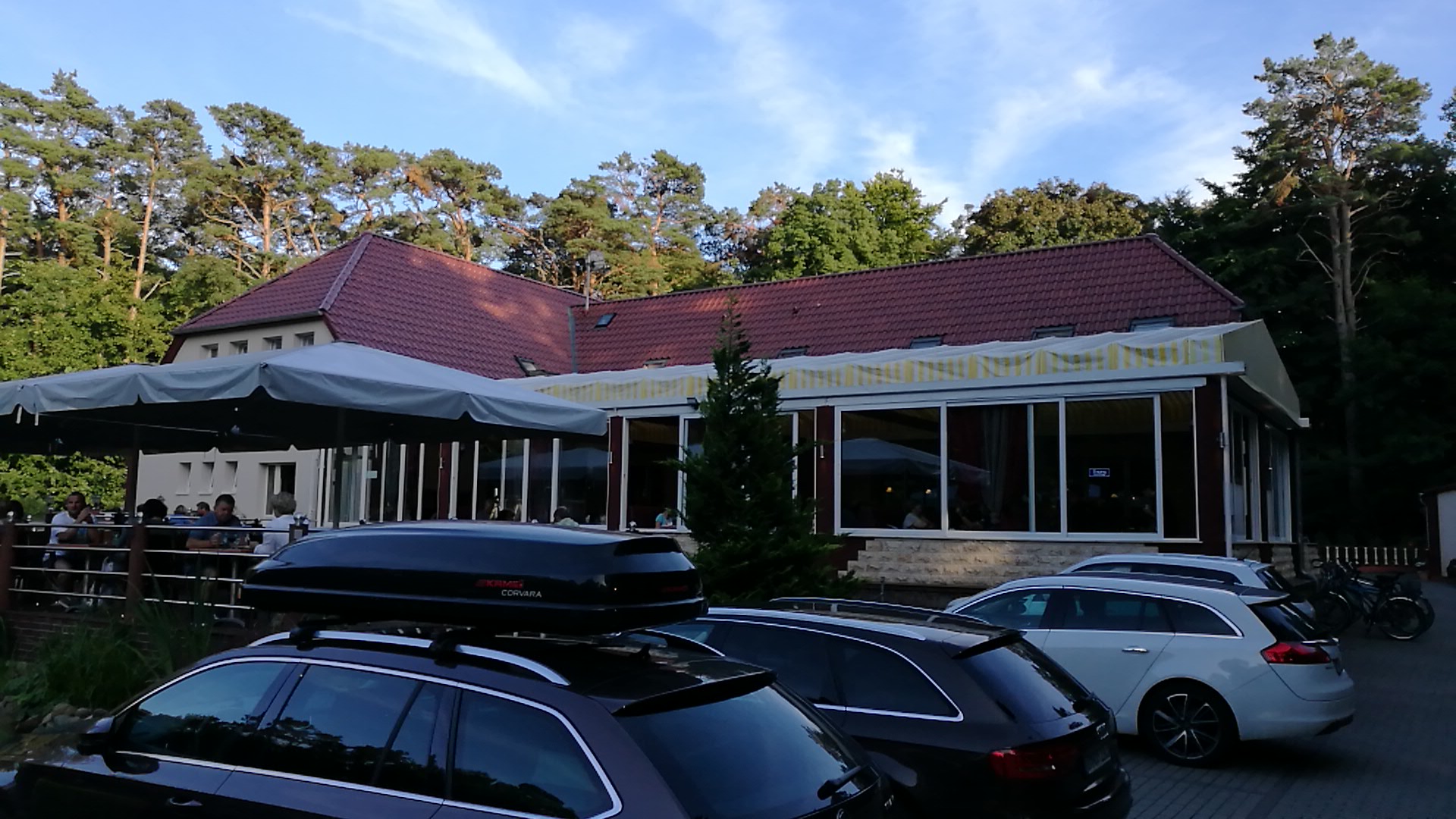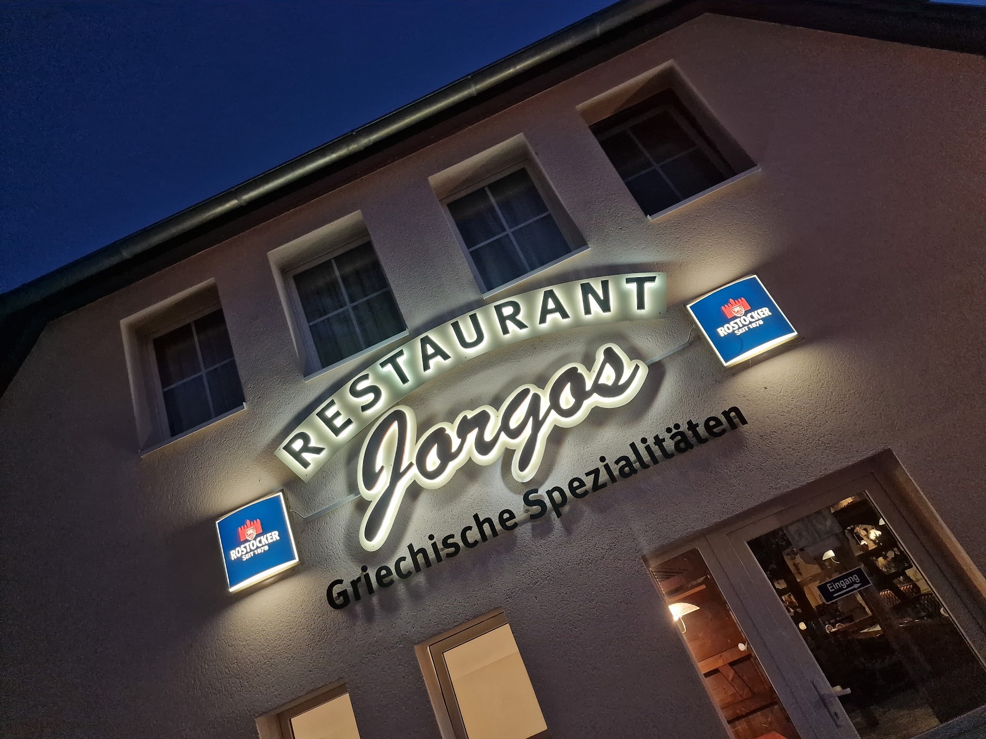 Read moretja, was soll ich sagen? Insgesamt etwas durchwachsen. Vieles wurde von Vorrednern bereits beschrieben. Seit mehreren Jahren wollten wir im Rahmen unseres Ostsee-Urlaubs eigentlich hier schon einmal Essen gehen. Dieses Jahr hat es geklappt. Wir waren im August 2022 dort. Da wir in den Vorjahren schon gesehen hatten, dass das Restaurant in den Sommermonaten recht gut besucht ist, wollte ich einen Tisch reservieren. Ich rief daher an. Leider war die Verständigung etwas schwierig. Es war zu vernehmen, dass eine Reservierung für einen Tisch im Außenbereich nicht möglich zu sein scheint. Na gut, dann halt drinnen. Außer einem "können kommen" war keine Kommunikation möglich, da das Gespräch von der Gegenseite beendet wurde. Trotzdem fuhren wir zur gewünschten Uhrzeit hin. Ein Parkplatz war nicht mehr verfügbar, man parkte bereits in zweiter Reihe. Am Eingang beschied uns ein Mitarbeiter "Alles voll". Nach Hinweis auf telefonische Reservierung konnten wir uns im Innenbereich dann aber einen von mehreren Tischen aussuchen. Das Ambiente ist ganz nett. Die Tische sind durch Glas voneinander abgetrennt, trotzdem war der Lärmpegel recht hoch. Nun galt es Geduld zu haben, viel Geduld. Dabei konnte man zahlreiche Mitarbeiter beobachten, die sich redlich bemühten, den Besuchermassen irgendwie Herr zu werden. Getränke und Essen wurde an Nachbartische geliefert, meistens gestückelt oder zunächst falsch. Wir konnten 20 Minuten nach Ankunft unsere Bestellung für Getränke und Essen aufgeben. Nach weiteren 12 Minuten wurden die Getränke geliefert, nach weiteren 3 Minuten ein "Salatteller". Er bestand aus Eisbergsalat, Weiß- und Rotkohl in Dressing versenkt. Insgesamt etwas lieb- und einfallslos. Das Hauptgericht erreichte uns schließlich genau nach einer Stunde unserer Anwesenheit. Das Essen war naja. Kein Highlight. Es besteht Luft nach oben. Beim überbackenen Gyros schwammen die Pommes mit in der Sauce. Hier wäre eine separates Schälchen besser gewesen. Die "Hähnchenbrust in Rahmsauce" kam mit einer Champignonsauce