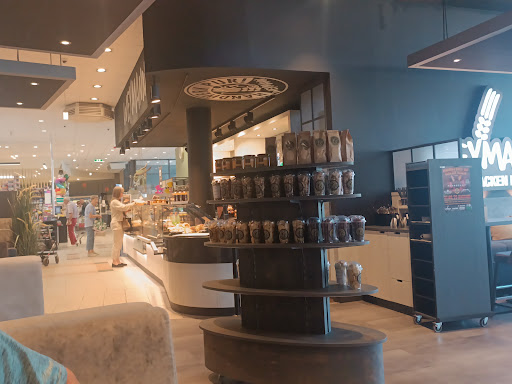 ich kehrte hier auf der suche nach einem leckeren franzbrötchen ein und investierte mehr als den mindestlohn in gebäck und kaffee. auch das lächeln der überdurchschnittlich atttraktiven bäckereifachverkäuferin kann nicht die miserable qualität des franzbrötchens entschädigen. die toiletten waren sehr warm... lg und...