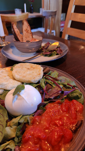 Die Essens Karte klingt grundsätzlich sehr lecker, man möchte am liebsten einmal alles bestellen. Wir entschieden uns für 2 Vorspeisen und je ein Hauptgericht. Die Vorspeisen kamen schnell, waren sehr heiss und frisch zubereitet, der Burrata war köstlich, wenn man bedenkt, dass das Restaurant darauf achtet, das alles Bio ist, sind die Preise zudem wirklich fair.