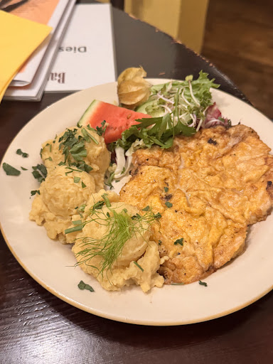 A very cosy restaurant with nice decoration and good food with variety of options. I tried their pumpkin schnitzel from their autumn menu and was satisfied. However, I don’t know if they don’t like English speakers or single guests but the service was unexpectedly bad. I really do not think speaking German should be a requirement for tourists but the lady who took my order seemed not to think so, as she only spoke German to me and albeit I was speaking English, did not offer an English menu which I believe should have been even on the table default as the restaurant is in a very touristic area. She did neither visited my table again after bringing the drink nor made any eye contact or so until I wore my jacket to go to the bar to pay. The gentleman who brought the food on the other hand was...