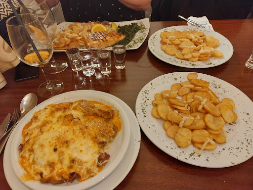 Read moreEtwas versteckt in einer Seitenstraße befindet sich das Restaurant in der ersten Etage des Hauses. Die Servicemitarbeiter sind zurückhaltend freundlich. Das Ambiente fanden wir absolut in Ordnung. Die Karte ist relativ groß und für jeden Geschmack ist etwas dabei. Auch Gerichte für Kinder sind extra aufgeführt. Ich finde es trotz allem schade, dass es typische Gerichte wie Spaghetti, Pommes und ähnliches sind. Ich fände Gerichte mit griechischen Wurzeln sehr spannend und als Alternative nicht verkehrt. Aber es sind nun mal Kinder. Das Essen ist sehr lecker. Einziges Manko: die Portionen sind, unserer Meinung nach, viel zu groß. Teilweise kann man das Fleisch nicht schneiden ohne dass die Beilagen vom Teller fallen. Dies wurde von uns angesprochen und die Antwort war: na, lieber zu viel als zu wenig