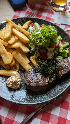 Zu erst einmal das Ambiente ist sehr angenehm. Angebot der Speisen und Getränke ist gut. Ich war schon mehrfach dort beim ersten mal Steak bestellt und nicht so zufrieden gewesen danach Burger probiert mehrfach Weltklasse, heute mal wieder Steak Entrecote 300g(26€ca.)ohne Beilagen, Rare bestellt Medium Rare bekommen kein Thema kann passieren habe höflich darauf hingewiesen nach ca. Einer Minute kommt die Bedienung mit dem Teller zurück das Steak in der Mitte angeschnitten und versucht mich zu überzeugen das es das sei was ich bestellt hätte dem ist aber immer noch nicht so.... Kellnerin geht in die Küche zurück 1 Minute später kommt der Chef persönlich mit meinem Teller und einem rohen wirklich schmackhaft ausenendem Stück Entrecote aus der Küche und fragt mich wo den der Unterschied zwischen dem Fleisch auf dem Teller und meinem im Kern sei, ich entgegnete im das mein Fleisch Medium Rare anstatt Rare sei seine Reaktion darauf nur ein wütender und abwertender Blick keine Entschuldigung oder sonst etwas. Fehler passieren aber Ignoranz und Überheblichkeit am Gast gehen gar nicht! Ich bin vom Fach kenne Gartsufen und Serviceorientiertes Gästemanagement nur zu Gut! Dies war hier keines Falls gegeben. Die Produkte die verwendet werden sind Top, aber Service am Gast sollte immer oberste Priorität haben auch wenn man sein Team oder einfach nur sein eigenes Ego schützen möchte.! Fazit mein nachgereichtes Steak war Blau aber alle mal besser als vorher aber immer noch nicht das was ich wollte... doch bevor der Chef an einem Anfall oder anderem leiden muss nur um seine Gäste halbwegs zufrieden zu stellen oder ich in der Zwischenzeit nicht noch 2 Bier trinken muss habe ich es so hingenommen und genossen 😉 Am Ende bleibt ein fader...