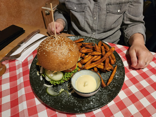 Read moreLeider keine so tolle Erfahrung. Wir sind mit viel Hunger gekommen und hatten auch gute Laune dabei. Draußen sitzen war aufgrund von Reservierungen nicht möglich. Der Service war professionell. Das Ambiente hat mir, subjektiv, überhaupt nicht zugesagt. Die Speisekarte ist groß, es gibt reichlich Auswahl. Ich habe den Chicago-Burger bestellt. Meine Erwartung war, dass ich einen großen Burger serviert bekomme, auf dem frittierte Zwiebeln sind. Tatsächlich habe ich die Zwiebelringe als Beilage bekommen. Auf dem Burger selbst war keine Sauce, zumindest könnte ich geschmacklich und visuell keine feststellen, ebenso wenig wie Käse. Dafür gab es Sauce zu den Zwiebelringen. Der Burger war geschmacklich für mich leider unter meiner Vorstellung, da er handwerklich und von den Zutaten her i.o war, aber eben nichts besonderes und im Preis-Leistungsverhältnis eher negativ zu bewerten ist. Das Brot war geschmacklich vergleichbar mit einem fertigen Bürgerbrot aus dem Supermarkt Ihrer Wahl. Auch fehlt der feinschliff, das Markenzeichen, dieses etwas, dass es eben nur in diesem Laden so gibt. Fleisch war i.o. Die Zwiebelringe waren ebenfalls handwerklich gut, reißen aber das Ruder nicht mehr rum. Das große Kritikpunkt stellt in meinen Augen der Preis von ca 19€ dar. Für einen wirklich einfachen, unkreativen Burger und einer Beilage, ist das einfach zu viel und hat mich letzten Endes veranlasst eine Kritik zu verfassen. Traut euch, experimentiert, kreiert eigene Variationen und bringt etwas wirklich exklusives auf den Teller. Das Potential ist sicherlich...