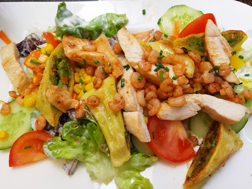 Read moreAuf der Speisekarte wird zwischen kleinen und grossen Portionen unterschieden. Ich bestellte mir eine grosse Portion Nudeln mit Schinken-Champion-Sahnesosse. Erhalten habe ich einen grossen Teller mit wenig Inhalt zum stattlichen Preis von 10,60 Euro. Auf meine Frage ob die Bedienung meine Bestellung falsch erfasst hat, da ich keine kleine sondern eine grosse Portion bestellt habe, antwortete sie es war eine normale Portion ......! Geschmacklich Durchschnitt. Wenig Schinken, Käse und Sahnesosse drin. Nachher kaufte ich mir noch einen Döner in der Nähe um satt zu werden. Dabei kosten Nudeln im Einkauf sehr wenig....! Bekannte am Tisch bestellten Currywurst (mit Pommes als Beilage) in Form eines Stückes Fleischwurst, von der ich nach deren Klagen über den nicht guten Geschmack ebenfalls ein Stück probierte : weiche, wässrige und salzig schmeckende Konsistenz ala Billigwurst aus dem...