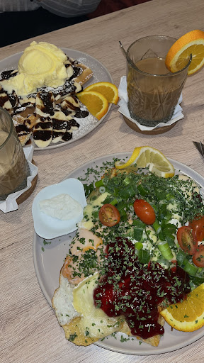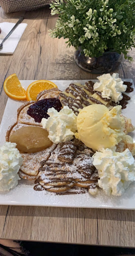 Read moreGehe sehr gerne dort hin, da es nichts Vergleichbares in der Umgebung gibt. Allerdings gibt es einige Kritikpunkte und Verbesserungsvorschläge: Wir haben einmal ein vegetarisches Gericht mit Schinken bekommen. Das ist leider unter dem Berg an Deko, Frühlingszwiebeln und Spiegelei nicht erkennbar und somit sehr unangenehm, wenn man dann darauf beißt. Sowas kann zwar mal passieren, aber gerade bei Unverträglichkeiten, Allergien und strengen Ernährungsweisen sollte hier mit einem Adlerauge darauf geachtet werden, dass das richtige Essen serviert wird. Die Preise sind sehr teuer. Frische Qualität etc. ist schön und gut, aber für einen Chaitee mit Espresso und Hafermilch (in kleinem Glas) zahlt man über 6€, was ich dann doch sehr hoch finde und nichts mit frischer Qualität zu tun hat. Für ein Bio-Ei würde ich bspw. auch gerne mehr zahlen, aber bei euch ist leider nirgendwo angegeben, welche Eier ihr verwendet. Etwas mehr Transparenz zur Rechtfertigung eurer Preise (und nicht einfach „Wir sind ein kleines Unternehmen und bieten frische Qualität“) wäre toll. Ohne Reservierung bekommt man hier so gut wie keinen Platz, außer man kommt zu einer außergewöhnlichen Uhrzeit wie z.B. Donnerstag Mittag. Die Gerichte wiederholen sich leider viel: es gibt quasi den gleichen Belag nur mit unterschiedlicher „Unterlage“, also Galette, Käsewaffel etc. Etwas mehr Abwechslung wäre toll. Sehr kleine Crêpe-Auswahl. Ein Belag mit frischen Beeren/Früchten (nicht nur Banane, Orange, Zitrone) wäre etwas, was noch fehlt. Leider keine Saisonkarte mehr. Von Erdbeeren zur aktuellen Erdbeerzeit liest man gar nichts. Manchmal riecht es sehr verbrannt im Laden. Nun zu euren Bedienungen: sehr freundlich, allerdings manchmal verpeilt oder verstehen einfachste Bestellungen nicht, wodurch man sich dreimal wiederholen muss. Eine der Bedienungen ist etwas ungeschickt und knallte uns einmal regelrecht die Getränke und die Teller auf den Tisch. An besonderen (Feier-)Tagen ist immer sehr viel los und ihr kommt nicht hinterher, was man auch merkt.