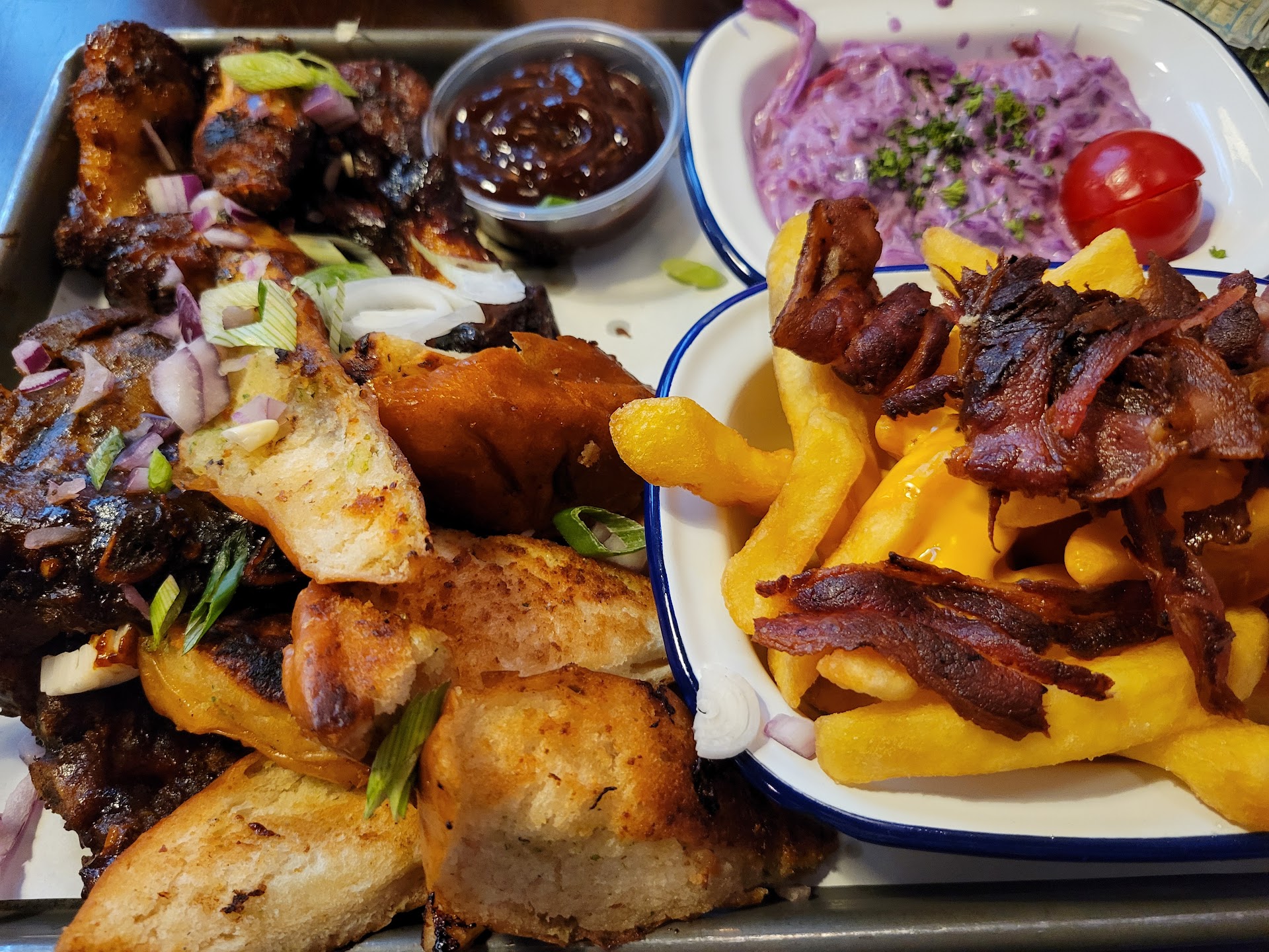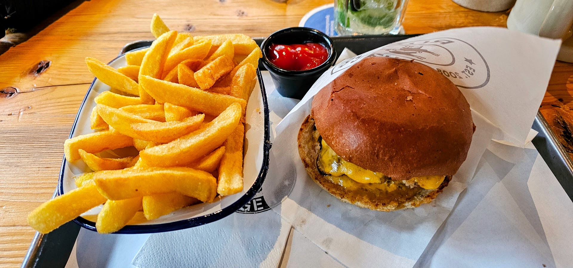 Zum Essen: Wir waren zu 4t und die Kellnerin war sichtlich überfordert unsere Bestellungen wie gewünscht aufzunehmen. Die "Bestellarie" dauerte nochmals knappe 10 Minuten. Ich möchte betonen das wir noch immer die einzigsten 4 Leute im Restaurant waren. Ich möchte nicht wissen wie das ist wenn der Laden voll ist... Die Qualität der Speisen lies sehr zu Wünschen übrig. Von fehlenden Dips über kalte Fleischpatties war alles dabei. Der Cesar Salad war in meinen Augen einfach Verarschung: Paar leicht braune Blätter Salat mit fast keinem Dressing oder Croutons und einem Hauch Parmesan. Dafür stolze 8 Euro verlangen ist frech!