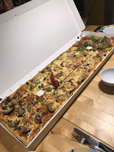 Read moreWir hatten gestern Abend das erste mal hier bestellt. Wir wurden freundlich am Telefon empfangen und beraten. Hatten uns für die Meter Pizza mit 4 verschiedenen Belägen entschieden - überhaupt kein Problem oder Mehrpreis. Mein Sohn hatte diese dann abgeholt darum kann ich das Ambiente nicht beurteilen. Ihm wurde aber sogar vom Personal geholfen das Monster Ding in sein Auto zu beladen ;-)