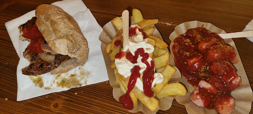 Der Platz hier reicht nicht, um die leckere Freßbude zu beschreiben: Wir haben Bayreuther Würstel und die Berliner Currywurst probiert. Beides extrem lecker. Gerade zusammen mit den hausgemachten Pommes. Durchschlemmen! Die Preise sind auch hier moderat.