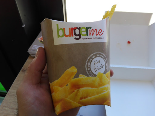 Bisher konnten wir noch nie über burgerme meckern. Das Essen war meist nach 20 Minuten schon da. Leider haben sie in den letzten Wochen stark nachgelassen. Als wir vor einigen Wochen bestellten waren die Pommes viel zu dunkel und trocken und gar nicht gewürzt. Außerdem war die Soße beim Burger überall in der Packung verteilt. Damals haben wir nichts gesagt, denn wir dachten uns nur: "Kann ja mal passieren"