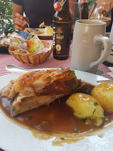 Das Schäuferl am Sonntag präsentierte sich in Bestform. Das Fleisch zart und saftig, die Kruste resch. Begleitet wurde es von einem handgedrehten Knödel aus sehr schmackhaftem - vermutlich sogar hausgemachtem - Knödelteig, einer feinen Dunkelbiersauce und genau der richtigen Menge an Sauerkraut. Die Brotbröckerl im Knödel hätte man stärker rösten können, aber das geht im Gesamtgenuss unter.