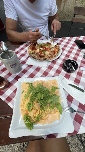 Read moreDie Trattoria am Studentenwald hat mehrere Chancen um sich zu beweisen; wurden allerdings alle mehr oder weniger in den Sand gesetzt. Zum Essen: Eine ganz normale Pizza wie man sie in jeder x-beliebigen Pizzeria finden kann und auch gute Nudelgerichte. Die Salate sind allerdings ziemlich einfallslos und lieblos angerichtet. Zum Service (das Beispiel lässt sich auf mehrere Besuche übertragen): Wir saßen an einem Sommerabend draußen im Biergarten, fanden allerdings nur dreckige Tische vor die mit Blättern und Blütenstaub bedeckt waren (einfach mal zu Beginn der Schicht alle Tische für den Abend abwischen hätte es getan) Es vergingen ca 10-15 Minuten bevor man von einer Servicekraft wahrgenommen wurde. Es verging wieder einige Zeit bis man die Getränke bekam Nachdem wir es geschafft hatten auch das Essen zu bestellen musste man einige Zeit in Kauf nehmen; nach einer halbstündigen Wartezeit fragte ich wo denn die Vorspeise bliebe; daraufhin brachte die Kellnerin die Vorspeise und Hauptspeise zusammen an den Tisch was eigentlich nicht Sinn der Sache sein sollte.