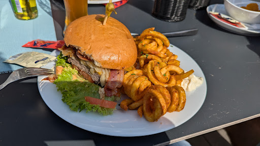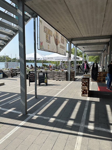 Read moreNach einer langen Fahrradtour wollten wir uns hier was leckeres zum Essen gönnen. Das Wetter und der Ausblick waren Bombe, aber schon beim Anblick der „Speisenkarte“, wären meine Frau und ich anderswo hingefahren. Nun gut mit Kindern, die hungrig sind ist es etwas schwieriger. Wir bestellten uns Flammkuchen, Pommes und Falaffel …..viel mehr stand auch nicht zur Auswahl. Das „Essen“ war innerhalb kürzester Zeit AUFGEWÄRMT …von Goldbraun gebrannt, war nichts zu sehen.