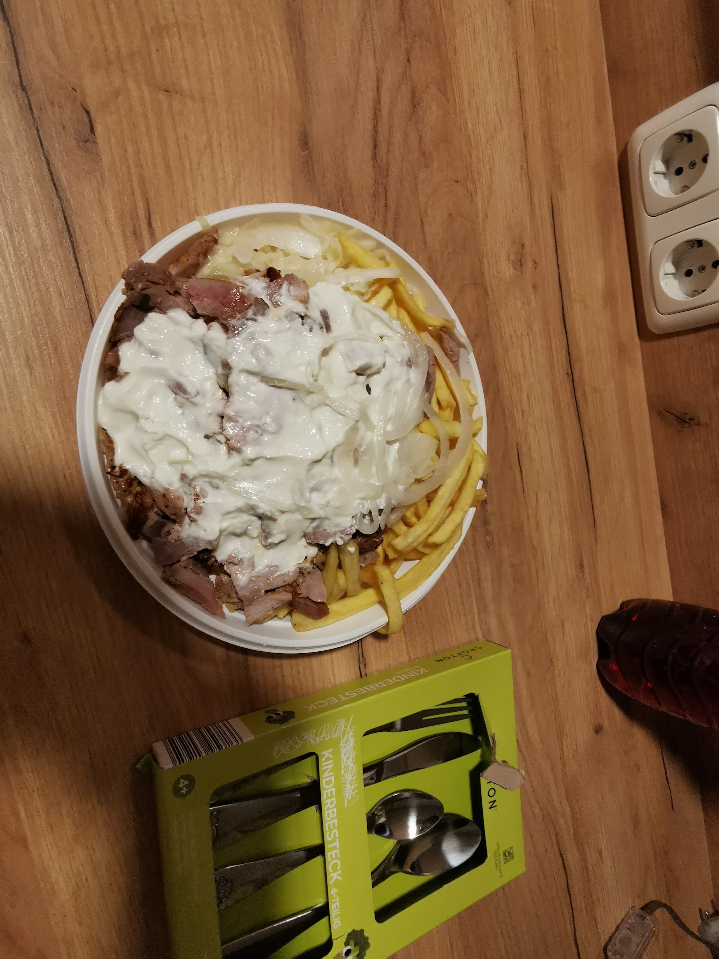 Currywurst Pommes (der deutsche Küchenschlager) selbst das hat man hier zur Perfektion getrieben. Weil lecker