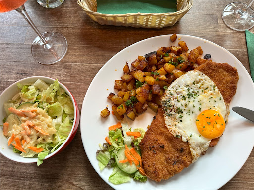 Zu allererst! Man findet in unmittelbarer Nähe einen Parkplatz. Wir wurden sehr freundlich begrüßt und genauso auch bedient. Wir hatten im Vorfeld einen Tisch bestellt. Es wirkte alles sehr gemütlich und sauber auch die Toiletten. Besonders toll ist der angrenzende Raum, dort kann man dem Pizzabäcker zusehen, wie er eine Pizza herstellt. Das Essen war sehr gut. Wir hatten Wildlachs mit Bratkartoffeln und Salat sowie ein Schnitzel mit Pommes und Champignon-Soße. Die Champignons waren frisch, keine Büchsenware. Zum Nachtisch noch Apfelstrudel mit Vanilleeis. Alles war sehr lecker! Besonders lecker war auch der Latte Macchiato mit Caramel. Wir werden wiederkommen, das ist sicher! Einen herzlichen Dank an die Wirtsleute für die uns entgegengebrachte...