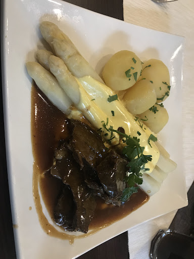 Wir (Eltern + 2 Kids) waren zur Mittagszeit im Lokal. Das Restaurant war sehr übersichtlich gefüllt, was jedoch in dieser Gegend und zu dieser Zeit nicht sehr überraschend ist. Der erste Eindruck ist positiv und das Restaurant lädt zum verweilen ein. Das Speisenangebot ist angemessen, regional/saisonal und bodenständig. Beim betreten des Lokals wurden wir freundlich empfangen und es wurde sofort ein Kinderstuhl und Spielzeug angeboten (neuwertiges und sauberes Spielzeug 👍🏻). Als Vorspeise haben wir Würzfleisch mit Pfifferlinge und kleinem Salatbouquet bestellt. Es war einfach nur lecker (Dressing ebenfalls sehr gut!). Beim Hauptgang haben wir uns für Schweinefiletspitzen mit Tagliatelle und Pfifferlingen entschieden. Dieses Gericht ist ausbaufähig. Optik: ansprechend. Geschmack: (mit Ausnahme vom Fleisch) wie erwartet, aber ohne besondere Raffinesse. Ich vermute, dass statt Schweinefiletspitzen auf Sauenfiletköpfe zurückgegriffen wurde. Das sollte dringend geändert werden!!! Zum Dessert haben wir uns die Variation bestellt. Optik: ansprechend, modern und lecker. Hier sollte nur definiert werden, was das Schokodessert darstellen soll (Creme oder Mousse). Eine Mousse au Chocolat ist es jedenfalls nicht!
