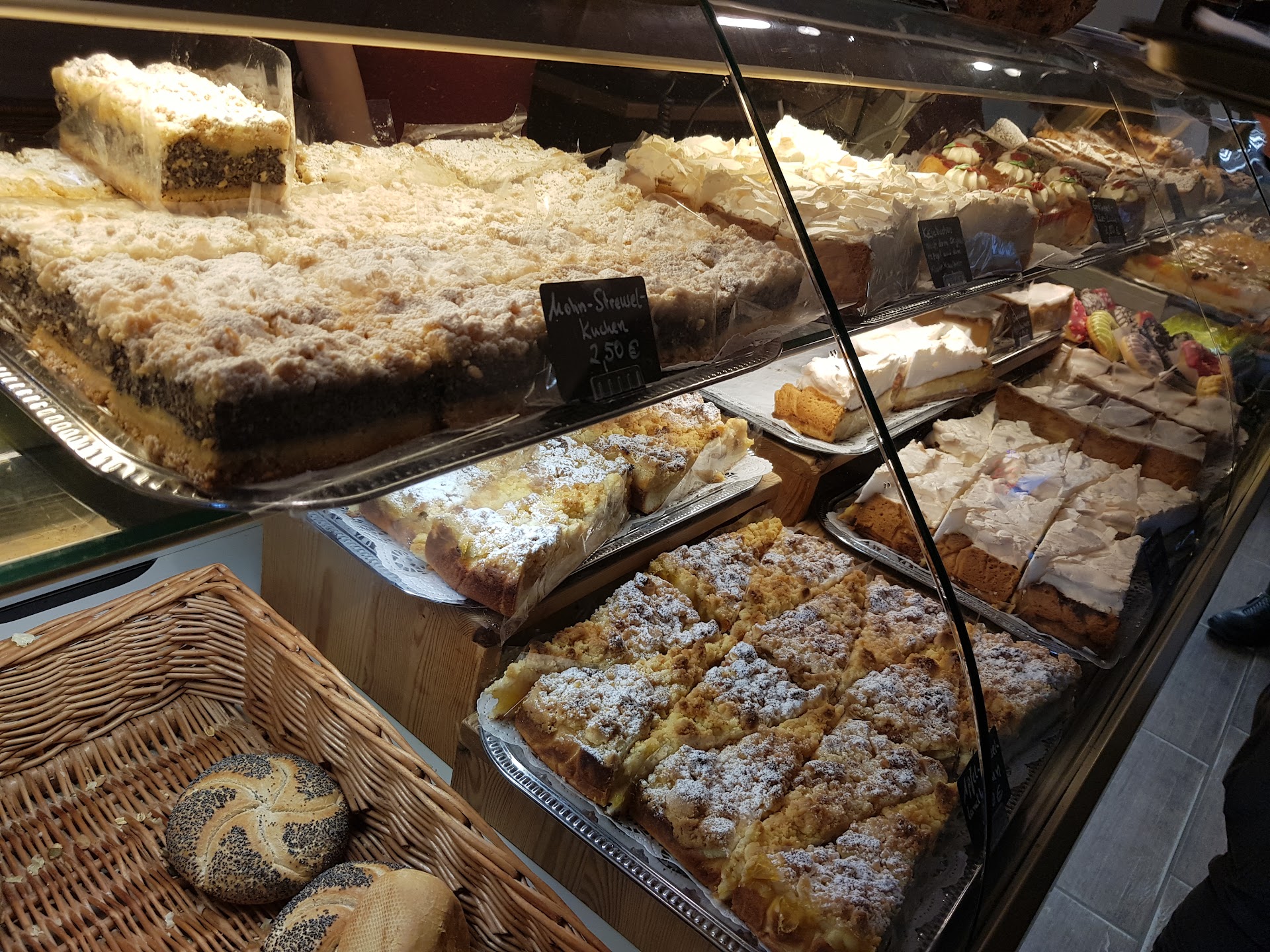 Read moreKuchenauswahl ist nicht zu toppen. Der Bäcker der gefühlt 1000 Sorten 🍰 Da ist wirklich für jeden etwas dabei. Der Kuchen schmeckt ausgezeichnet. Sehr beliebtes Ausflugsziel für BikerInnen 😁... 🏍💨 Anstehen ist keine Seltenheit. Einzige Mankos: Der Laden ist sehr klein, wenn alle Kuchenbegeisterte reinstürmen, um schon mal zu prüfen was man haben möchte, wird's recht eng. Die Tablett-Ablage zum Zurückstellen nach Benutzung ist mit den Tabletts von der Theke nicht "kompatibel" Die benutzten Tabletts müssen auf die Einschübe gelegt werden. Wenn ein Einschub fehlt (warum auch immer), bloß nicht versuchen das benutze Tablett in die dortige Fassung zu schieben. Wir haben es nicht gleich geschnallt und das Ende vom Lied war, das viel zu kleine Tablett rauschte samt Geschirr einmal durch... 😬 Die Aufregung war groß, Teller waren kaputt, die Verkäuferin stinksauer. Bitte unbedingt den wirklich winzigen, in der Eile kaum zu verstehend Hinweistext beachten 😂 Ansonsten klare...