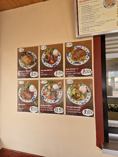 Preise sind unschlagbar. Gebratene Nudeln für 5€, mit Huhn 6€. Currys etc. für 8-10€. Allerdings ist die Qualität den Preisen entsprechend. Schmeckt nicht schlecht, aber recht fad. Hühnchen war ganz gut. Die Ausstattung lädt wirklich nicht zum verweilen ein, für to go ohne großen Anspruch aber...