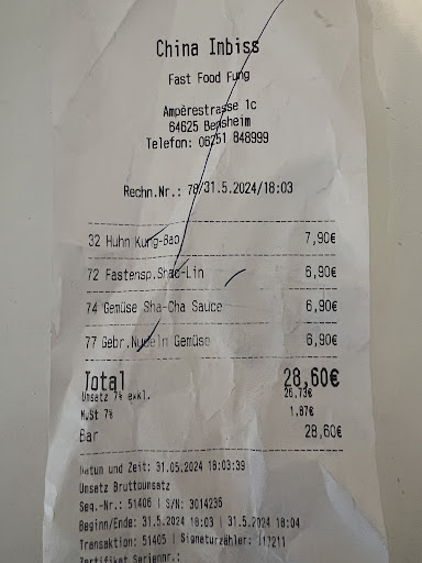 Für einen Imbiss - klasse! Ich weiß gar nicht, was Ihr alle habt ... das Essen schmeckt würzig und lecker und genauso, wie Asia-Imbiss schmecken muß. Möchte ich feine asiatische Küche, muss ich ein ein entsprechendes Restaurant gehen, wobei ich nicht die im Moment üblichen Freßtempel meine. Wenn ich hochqualitatives, europäisches Essen möchte, geh ich auch nicht in die Imbissbude. Und wer meckert, das MSC am Essen ist, der hat noch nie original asiatische Rezepte angeschaut ... dort heißt es dann immer: "noch etwas Geschmack ...."