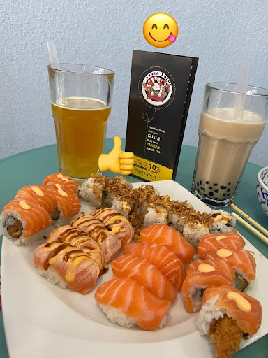 Read moreIch habe hier jetzt ein paar male bestellt und konnte jetzt mal eine Meinung zu dem Laden bilden. Und leider bin ich enttäuscht und dies war auch das letzte mal. Vorab kann ich zum Sushi nichts sagen, da ich kein Fisch esse. Eine Sache die mich schonmal tierisch aufregt ist, dass ich schön auf mein essen geduldig warte (Die Lieferzeit dauert sehr lange) und ich dann jedesmal nach einer Stunde angerufen werde und mir gesagt wird das es das essen nicht mehr gibt und ich mir was anderes aussuchen soll. Eigentlich hatte ich auch gar keine Lust auf etwas anderes, habe mir dann aber aus Höflichkeit doch etwas anderes ausgesucht. Ich verstehe nur nicht ob nur ich so viel Pech habe oder wie das sonst funktioniert? Ich bestelle ja nicht 1 Stunde vor Ladenschluss sondern gegen nachmittags und da frage ich mich wie denn schon die hälfte leer sein kann wenn der Laden noch 5-6 Stunden geöffnet hat. Nun zum Bubble tea ich liebe bubble tea seit dem ersten „Hype“ also 2013 und habe ihn auch schon in verschiedenen Ländern getrunken auch in vielen deutschen Städten und muss ohne Übertreibung sagen das das der schlimmste bubble tea war den ich jemals getrunken habe (hatte zwei bis jetzt von Funky Sushi das erste war ok und das zweite schrecklich). Am liebsten würde ich mein Geld zurück verlangen. Wo war der schwarze Tee? Es war nur Milch mit Tapioka! Die Tapioka Perlen waren so hart das ist unbeschreiblich gewesen und unzumutbar, wirklich wie Steine. Die müssen schon seeehr lange in dem Behälter sein das es zu so einem Zustand kommt weil Tapioka Perlen eigentlich immer schön weich sind und gut kaubar. Waren diese Tapioka Perlen auch so süß das ich fast an einem Zuckerschock gestorben bin. Ich trinke gerne süß aber das ist ganz bestimmt nicht eine „normale“ süßungsstufe. Jetzt zum essen: Bei den Edamame hat die Teriyaki Soße gefehlt. Die Poke Bowl ist lecker aber Teuer. Gyozas sind lecker aber zu hart wirkt für mich auch wieder so als wären sie schon abgestanden kann man aber essen. Frühlingsrollen super kann man nichts falsch machen. Noodle soup (wollte sour spicy soup gab es aber dann doch nicht also wurde es curry soup) war aber...