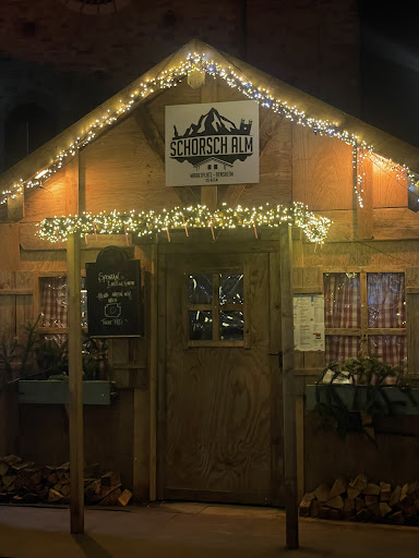 Die Schorschalm in Bensheim, fühlen wie in einer Apres-Skihütte. Tolles Ambiente, gemütlich, warm, viel Holz. Es gibt leicht erhöhte Tische, wie eine Art Tresen, aber auch flache, ganz normale Tische, jeder wie er mag. Kann man entsprechend vorab reservieren. Die Reservierung als solches kostet ca. 16,00 € pro Person, Bezahlung per Überweisung, wird aber mit dem Verzehr vor Ort verrechnet. Wir hatten das Fleischfondue als Menü gewählt und bei der Reservierung bestellt. Los gehts mit einem Aperitif....Alpenspritzer. oder Aperol Spritz zum Auftakt. Ein Gläschen Sekt, oder Secco geht auch immer. Es gab eine deftige Vorspeisenplatte mit Wurst, Käse, Schinken, Gurken, Obatzter, verschiedene Sorten Brot (Bensheimer Brote) und vieles andere. Hauptgang mit 3 verschiedenen Sorten Fleisch, Rind, Kalb und Poularde inkl. verschiedenen Dips, Silberzwiebeln und Cornichons, die kleinen Minigürkchen. Das Fleisch muss man natürlich selbst in einem Gemüse-Brühtopf garen. Macht Spass... ist kurzweilig und sorgt für so manchen Lacher. Dazu Schwenkkartoffeln, Gemüse, und Mixed Pickels. Zum Abschluss gabs eine Kuchenplatte mit verschiedenen Sorten Kuchen, Linzer Torte, Kaiserschmarrn, Vanillesauce, Schlagsahne und Kaffee deiner Wahl, ob Cappuccino, Cafe Latte, Espresso, oder Tee. Nicht ganz günstig, je nachdem was man noch so an Getränken bestellt (Wein, Bier, Schorle, Schnaps...), kann man aber so ca. mit 60,00-80,00 € pro Person rechnen. Wie es in einer zünftigen Skihütte so usus ist, es wird Musik aus der Konserve gespielt und durch das Stimmengewirr ist es mitunter relativ laut. Das muss man abkönnen.... Übrigens, das Käsefondue klingt auch sehr lecker, wahlweise mit Emmentaler, Alpenzeller, Bergkäse, Waldpilzen, Kartoffeln, Gemüse, oder Trüffel. Achja, man kann natürlich auch draussen sitzen, z.B. in Liegestühlen und nur einen Aperol schlürfen.... Alles in allem ein gelungener Abend mit freundlichem, aufmerksamen...