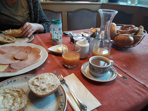 wir haben hier eine Nacht verbracht. Das Zimmer war groß und sauber. Wasser im kleinen Kühlschrank war vorhanden. wir hatten sehr spontan gebucht, ohne extra zu erwähnen, wurde uns ein Kinderbett bereit gestellt für unseren neun Monate alten Sohn. Abends haben wir vor Ort auch sehr gut gegessen. Ich hatte einen Butterzarten Schweinebraten und meine Frau eine richtig große Rinderroulade, dazu gab es Knödel und separat einen Salat. dieser Betrieb betreibt eine eigene Fleischerei. das merkt man. das Essen war Top. Morgens gab es Frühstück. 5 Brötchen, ein Croissant und ein laugen-Brezel. O-Saft , Eier und Joghurt wurden auch gereicht. Sehr gut. würde jedem empfehlen hier zu übernachten wenn er hier auf Durchreise ist. 100% das Geld wert. Die Bedienung war sehr nett und auch nicht aufdringlich!...