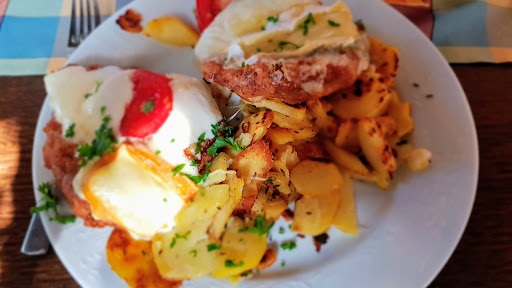In einem sehr gemütlichem Ambiente kann man hier leckere Speisen zu sich nehmen. Es gibt deftige Hausmannskost, leichte Kost u.v.m. Sehr zu empfehlen: wechselnde Tages-/ Wochenkarten. Hier wird Wert auf regionale und saisonale Küche gelegt... das merkt man. Wobei ich mir für ersteres u.a. selbstgebackenes Brot wünschen würde. Wir waren zur Bärlauchzeit hier: Die Hähnchenbrust mit Bärlauch-Käse-Kruste ist ein Traum, lecker und gerne wieder! Ein Wunsch meinerseits: mehr Qualität bei den Pommes.