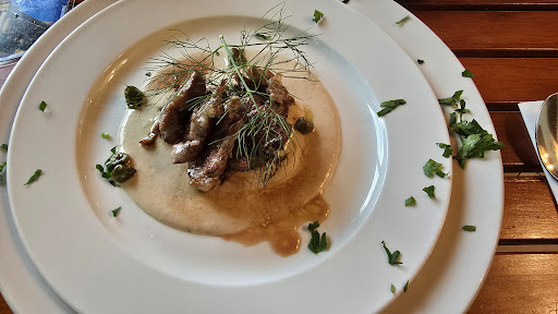Unsere Erfahrung war folgende: Außen die Tische waren sehr schmutzig. Unsere Weingläser waren teilweise blind und fleckig Vorspeisen waren derart mit Rucola überhäuft, das die anderen Komponenten in den Hintergrund rückten. Es war ein Wald von Rucola. beim Rindercarpaccio ging wohl die Zitrone aus, da würde einfach mit Apfelessig nach geholfen..brhhhh. Der Käse war auch kein Parmesankäse. Ich tippe mal auf Auflaufkäse. War aber schwer zu entziffern unter dem Wald von Rucola. Das Steak für 26.90 Euro war derart zäh, das man kauen musste wie ein Ochse. -falsches Wasser ohne Sprudel wurde auch noch serviert von einem jungen Mann der nebenbei von der Servicekraft angelernt wurde