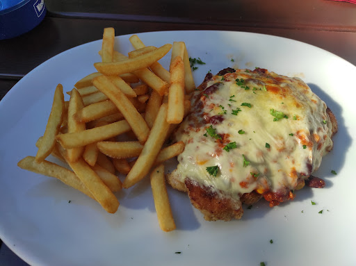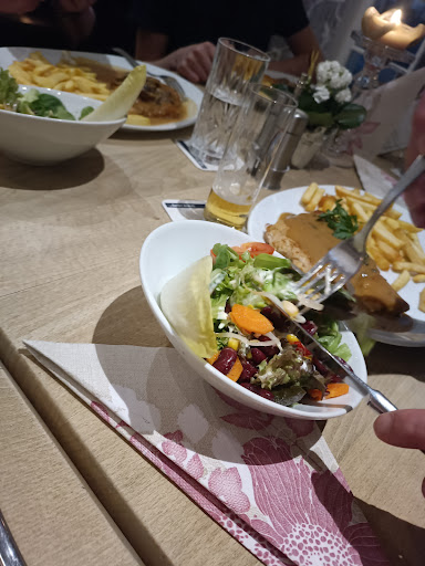 Read moreVorsicht Corona Hotspot! Wir waren gestern mit 7 Mann dort Essen keiner von uns wurde kontrolliert ob wir zu den 3 G gehören. Zudem trug das komplette Personal incl. Besitzer selbst beim servieren keine Masken. Wir hatten einen Tisch reserviert für 7 Leute welcher zum gemütlichem sitzen gerade mal für 4 Leute ausreichen war. Zum Essen kann ich nur sagen Schnitzel waren okay aber nicht mehr allerdings reichlich überteuert. Für 16,90 € erwarte ich ein lecker knuspriges paniertes Schnitzel und nicht eine weiche fettige Panade. Einer von uns hatte einen Putenburger welcher aus einem harten Brötchen bestand mit einem Stück Putenbrust Tomate on Top und einer Cocktail Soße und das für 13,90€😩. Beim abräumen der Teller fragte keiner ob es uns geschmeckt hat wahrscheinlich wissen Sie warum Sie nicht fragen! Halber Liter Bier 5,00€ Empfinde ich auch als sehr teuer. Von mir gibt es an dieser Stelle keine Empfehlungen für das Restaurant sondern eher den Tip sich was anderes zu suchen denn was dort geboten wird kann jeder Hobbykoch zu Hause um ein vielfaches besser! Der zweite Stern ist lediglich weil die Größe des Schnitzels okay war ca 200gramm. Wir gehen dort jedenfalls...