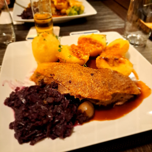 Read moreSeit jetzt fast 30 Jahren essen meine Freunde und ich jedes Jahr in einem anderen Restaurant in und um Köln Gans. Dieses Jahr wählten wir den "Alten Lindenhof". In ruhiger Lage ausserhalb des Kölner Trubels fanden wir zwar keinen Platz auf dem üppigen eigenen Parkplatz, konnten aber das Auto am Strassenrand 1min entfernt abstellen. Das Haus ist einladend beleuchtet und der Blick auf den zu dieser Jahreszeit verwaisten Biergarten lässt erahnen, dass dieses Lokal auch im Sommer ein begehrtes Ausflugsziel ist. Der Empfang durch das professionell unaufgeregte Damen Team ist herzlich. Der HauptspeiseSaal mit unserem Tisch für 6 glich allerdings einer überfüllten Bahnhofshalle. Laut und eng. Genussvolles Essen schwierig. Unterhaltungen nur in FC Stadion Lautstärke möglich. Auch die Stühle für längeres Sitzen zu unbequem. Die vorbestellte Gans wartete schon im wegen der vielen Gäste eng getakteten Ofen. So freuten wir uns bei einem gut gekühlten Gaffel auf den Hauptgang. Und wir wurden nicht enttäuscht. Vor dem Servieren wurde uns unsere Gans im Bräter kurz am Tisch präsentiert. Das Fleisch zart, saftig und auf den Punkt gebraten mit einer knusprigen aber keinesfalls verbrannten Haut. Die Beilagen für eine Herrenrunde ausreichend üppig und mehrmals frisch von den überaus aufmerksamen Damen nachserviert. Diese Gans ist eindeutig unter den top drei unserer langjährigen Erfahrung einzuordnen. Sehr zu empfehlen. Die Weinkarte umfangreich. Das Dessertangebot übersichtlich. Bitte Abstand nehmen von der Schokotarte in pappig schmeckendem Mürbeteigbett mit fragwürdigen Beilagen-Tamtam. Alles in allem empfehlenswert wenn die Gastwirte noch etwas für die Akustik im Raum tun würden. Weder an der Decke noch an den Wänden waren Akustikbilder oder ähnliches...