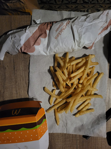 Als wĂ€re das nicht genug kontrollierten wir unsere Speisen und GetrĂ€nke, denn in dieser Filiale kommt es immer wieder vor das Bestellungen falsch oder unvollstĂ€ndig gebracht werden. Das passiert zwar vorzugsweise im McDrive aber auch bei dem Inhouseservice kommt es oft genug vor. Bei der Kontrolle der Bestellung kam mir der Eistee durch den Deckel sehr hell vor. Also ging ich zur Ausgabe und meldete dieses den Mitarbeitern vor Ort. Der erste Kollege meinte dann mit einem lustigen Ton zu seiner Kollegin âoh schau mal Pipiwasserâ das war auch tatsĂ€chlich noch völlig in Ordnung, auch wenn ich denke das man sich so einen Kommentar in einem Restaurant, egal welcher Kategorie, sparen sollte. Der Service seiner Kollegin hingegen war so was von schlecht, dass ich mir dachte das muss bewertet werden. Statt einem Wort der Entschuldigung behandelte man mich von oben herab, fragte mich was ich an stelle des Eistees haben möchte, da dieser scheinbar leer sei. Ich endgegnete dann Cola. Die Kollegin machte das GetrĂ€nk fertig und knallte es wortlos auf die Theke.