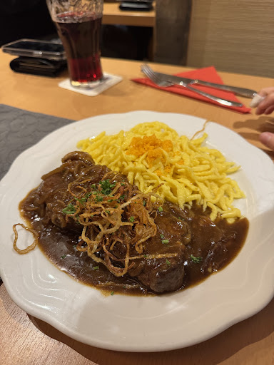 Die Bestellung vom Essen wurde zeitnah aufgenommen und in einer angemessenen Zeit umgesetzt. Leider war die Qualität nicht wirklich gut. Jägerschnitzel konnte man kaum essen. Fleisch war mehr als nur zäh. Einfach schlechte Qualität. Normales Schnitzel war bei manchen Personen am Tisch top, bei wieder anderen flopp.