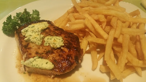 Rinderfilet war schön medium, die Bratkartoffeln jedoch völlig verbraten und einfach nur noch hart und dunkel braun.