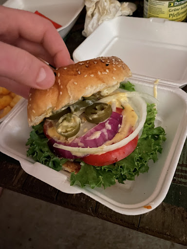 Read moreIst ist eher eine Sport Kneipe als eine Burger Bude. Wir haben zwei Burger zum mitnehmen bestellt. Es hat lange gedauert, was aber kein K.O. Kriterium ist. Aber: es war der mit Abstand schlechteste Burger ever. Unsere Erwartung war aber auch eher bezogen auf ein Burger Grill. Das war eine TK Bulette und irgendwie so einfache Scheibletten als Käse. Sauce konnte man suchen. Wir haben nur ein kleines Stück von den Burgern gegessen und noch die halbe Nacht was von gehabt. Also als Kneipen Snack ist das so zu erwarten. Wer einen Burger wie von anderen Burger Grills erwartet wird...