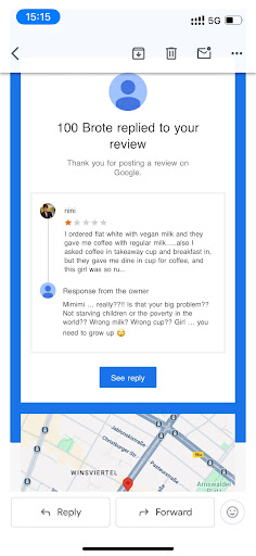 Second of all, i'm so sorry I expected a bathroom. I had walked a long way to find your cafe and expected to have the chance to empty my blatter before eating my food. You didn't have one, you had no advice to where to find one. Super demanding, I know. A kind advice, maybe spend the extra money you obviously earn from not giving out more than a shot of tap water on building a customer toilet. That would save you from a lot of annoying comments (your own words).