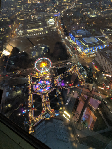 Pros: Beautiful view from the windows, rotating platform – a chance to see the whole city. Friendly staff. The fact that the orders were mixed up and they tried to bring me the wrong dish a couple of times didn’t bother me – for me, food and interior matter most in a restaurant. The design looks like it’s from 60 years ago but renovated. Dusty lamps.
