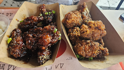 Read moreCame by for a quick snack around mid afternoon. Quick service, food was freshly made. Ordered the 6 PC 44 Bites with their spicy Gimi Oppa sauce. Delicious. The chicken was moist, tender, no tendons or tough bits. The sauce was spicy but not flaming hot. Exactly right level of spice that burns but you can still enjoy. Came with an extra fortune cookie and lollipop which was a cute touch. Calm atmosphere, several guests sitting in, but the delivery service seems very popular too. Rate it very high for Korean chicken in Berlin, I've definitely had worse in town. I'll be back! Their 44Burger looks very good too