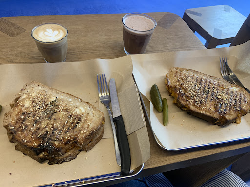 The staff at this cafe & bakery is super friendly and helpful, the interior design with its all cornflower blue walls and floor and high quality wooden furniture is stellar, but the actual products that are offered here -- the all gluten-free bread and desserts - are really not that good, even for GF standards.