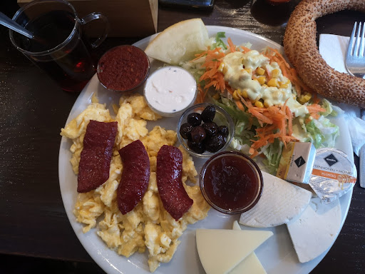 Read moreZum ersten Mal probiert und direkt positiv überrascht worden. Ich hatte ein Menemen Menü mit extra Sucuk. Im Menü inbegriffen sind: 1 cay, 1 Simit, Beilagensalat, Feta und Oliven. Das Menemen war sehr lecker und hatte die perfekten Konsistenz. Es wurde warm und frisch serviert und hat sehr gut geschmeckt. Auch der Simit war gut. Könnte für meinen Geschmack fluffiger sein, aber das krosse Drumherum war super. Der Beilagensalat war sehr nichtssagend. Ein bisschen Gurke/Tomate wäre irgendwie besser gewesen. Aber Feta und Oliven waren top! Das Essen war appetitlich angerichtet. Menemen-Menü mit Sucuk hat (ich glaube) 12-14€ gekostet und sehr lange satt gehalten.