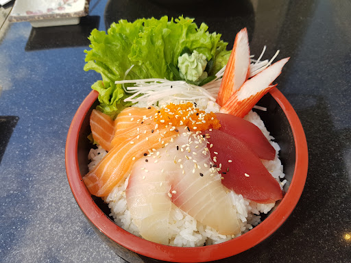 I ordered the chirashi don which should contain 3 different fish sashimi in a rice bowl with salad and avocado (seen on the picture in the menu). Upon my question what fish it would contain the waitress told me exactly as seen on the picture :salmon, tuna and butterfish. When the bowl arrived I could already see that there was no butterfish (see attached picture), it tasted quite squishy and there wasn't any avocado either. When I asked the waitress why there wasn't any avocado as I had seen in the menu she just replied 'nonoo this just decoration to make beautiful photo, just decoration '. All for 9.50 is also quite expensive when the bowl wasn't even what I wanted (better go to kuchi for 8 euros)! I will not...