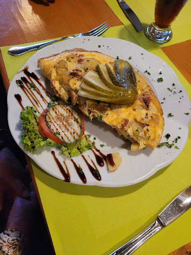 Read moreEigentlich sind zwei Sterne schon hart an der gut gemeinten Grenze... Aber von vorn. Waren dort am 6.11.16 um ca. 13.30 zu dritt. Zwei Erwachsene und ein Kind. Es war gut gefüllt, aber nicht überfüllt. Trotzdem dauerte es erstmal schon eine ganze Weile bis die Speisekarten kamen. Nach rascher Auswahl dauerte es dann wieder einige Zeit bis wir die Bestellung aufgeben konnten. Erstaunlich für ein alpenländisches Restaurant : Weder bayrische bzw. österreichische helle Biere (würden angeblich nicht gut laufen), noch bayrische Weizenbiere(Schöfferhofer kommt aus Frankfurt) waren auf der Karte! Die Getränke kamen dann recht rasch. Nach ca 15 Minuten bekamen wir mit, daß am Nebentisch schon nachgefragt wurde wo deren essen bleibt. Nach weiteren 10 Minuten wurden auch wir unruhig. Insgesamt warteten wir dann gut 40 Minuten auf unser Essen. Bestellt hatten wir die Wildschlemmerpfanne, das überbackene Schnitzel und den Leberkäs. Die Wildschlemmerpfanne war soweit ok, mehr aber auch nicht. Die Birne mit den Preisselbeeren darauf war mit Sahne angerichtet - leider nur Sprühsahne. Beim Schnitzel und dem Leberkäs war direkt zu sehen das die dazugehörigen Bratkartoffeln und eigentlich alles im Öl schwamm. Es sah somit schon nicht wirklich appetitlich aus. Das Schnitzel selbst war mit leicht angebrannter Panade auch nicht wirklich gut. Beim Leberkäs war zu sehen das es die im Supermarkt erhältlichen Formscheiben waren... Selbst mein Sohn der sich kaum mal beschwert, hat erkannt, daß der Leberkäs nicht der Beste war. Immerhin war die Bedienung bemüht, was als einzige Begründung für die zwei Sterne herhalten kann. Die Enttäuschung war an diesem Tag umso größer, weil wir uns eigentlich besonders auf das bayrische Essen...