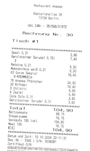Read moreIch gebe 2 Sterne um das Geschäft von Menschen die Geld verdienen wollen nicht zu zerstören. Im Jahre 2024 noch einen "Griechen" aufzumachen, wie es "Griechen" vor 50 Jahren gemacht haben. Wow! Respekt! Ouzo, Übersetzungsserviette und die Karte - alles original. Und garantiert nicht in Griechenland zu finden.
