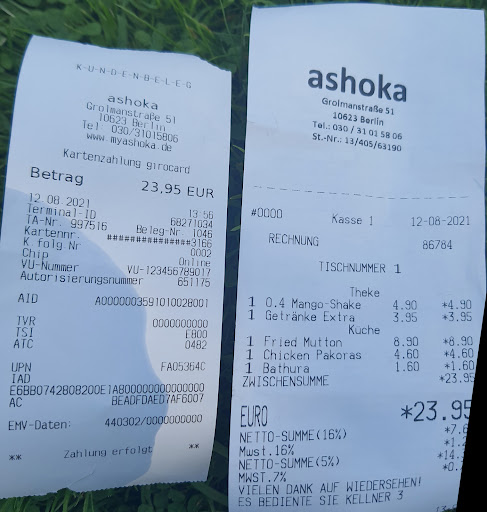 Read moreAshoka is one of my favourite Indian restaurants in Berlin (among other popular ones, like Agni, Yogi, etc). Whenever I am around Savignyplatz, I look forward to have some food here. The dishes are so spicy and delicious, my favourite being chole and sabzi. I feel that the quantity of rice is a bit less, so I prefer Roti and salad which are very good. Some of my European friends liked the Barfi sweet that they offer here, though I couldn't find it better or on par with the Barfis in India, but they are worth a try if you feel like popping a sweet in. Though it's a small restaurant, I liked the interiors. There are also tables outside, so depending on the weather, you can choose your place to sit. I haven't seen this place overcrowded so far, so I think it can be visited with family or friends without worrying too much...