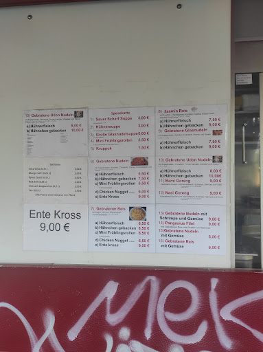 Average street Asian food -- lots of rice, a little meat. Prices are clearly above average, understandable as the location/area is very popular. The "service"? I was given just the food, no fork/knife, no napkin and without bothering to ask me if I need any of those. No problem, it isn't a posh restaurant, I can take everything myself. But when I took 1 plastic knife and 2 plastic forks (1 for my child and 1 for myself), the chef said "Hey! Don't take too many! Take only one!" He's just obsessed with saving 3 cents on forks after I paid 6€. And these 3 cents are more important to him than the client's feelings. Never again. There's a Döner Kebab...