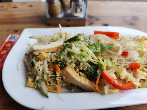 I came to this place looking for some nice asian food while traveling alone in Berlin. The food was good, however their service was terrible. I asked for one table for myself in english, and she made some angry face (??) and also threw the menu on the table. Also they don’t accept card. I missed the small tiny ant sized sticker on the counter covered by plants that says no card allowed and i was trying to dig my coins out and then i could see that same lady getting impatient and angry. And then she gave me the change with her wet hands while doing the dish.