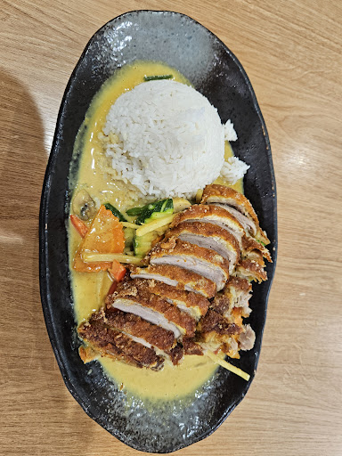 Die guten Bewertungen hier kann ich leider nicht nachvollziehen. Ich hatte bisher einige male etwas zum Mitnehmen bestellt. Das Hühnchen-Cross (mit gelbem Curry) schmeckte eher wie normal paniertes Hühnchen, als nach etwas asiatischem. Der Reis war schon klebrig, verkocht und die Champignons hatten einen seltsamen Geschmack. Meine Frage nach dem Unterschied vom roten und gelben Curry konnte der Mann hinter der Theke nicht beantworten (vermutlich fehlende Deutschkenntnisse) und zeigte nur auf das Bild hoch über dem Tresen. Das Preis/Leistungs-Verhältnis haut bei dem Geschmack...